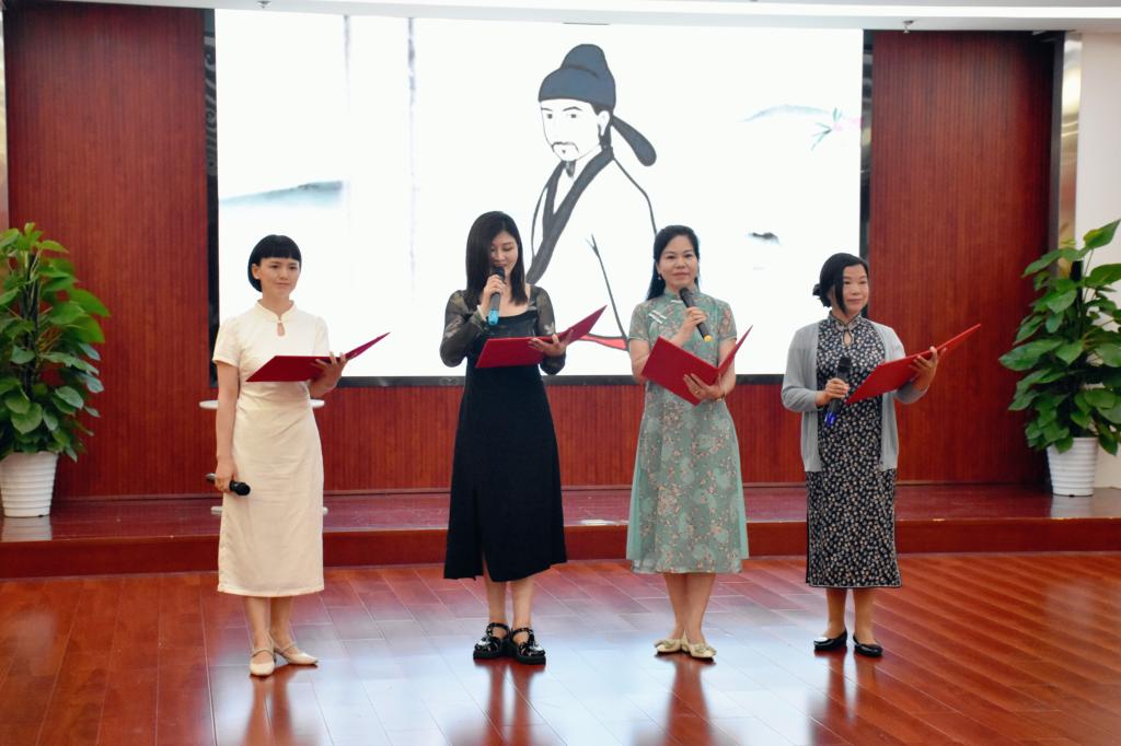 本次活动由工会主办,校朗诵协会承办,并得到了校图书馆、子弟学校、教职工旗袍协会、摄影协会等单位的鼎力支持。湖南省著名朗诵艺术家彭立军、学校工会常务副主席李伟、图书馆馆长杜荣华等相关负责人、教职工朗诵协会全体成员、各单位女职工代表等90余人共同参与了本次活动。
