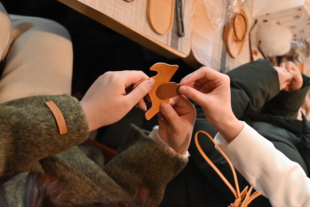 本次活动特邀专业皮艺师开展沉浸式教学,通过皮革知识讲解、针法示范及个性化指导,带领学员掌握双针缝制等核心技艺。女教职工们认真地裁剪、缝制,将教育智慧融入手工制作,经过一个多小时的精心制作,一个个独具特色、时尚又实用挂饰小件在大家的巧手中诞生。这些手工作品不仅展现了女职工们的创造力与审美情趣,更是对工匠精神的一次生动诠释。土木学院李君老师感叹:“每道工序都需要像对待学生般的耐心,这正是匠心的真谛”。