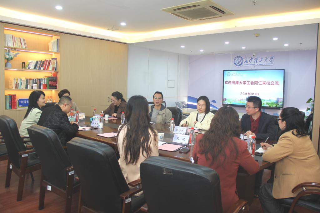 4月2日,湘潭大学工会副主席贺军一行来LETOU官网交流调研。学校工会常务副主席李伟,副主席王双、刘雪莲,实验与资产处副处长唐中勇及相关职能科室负责人参加座谈。
