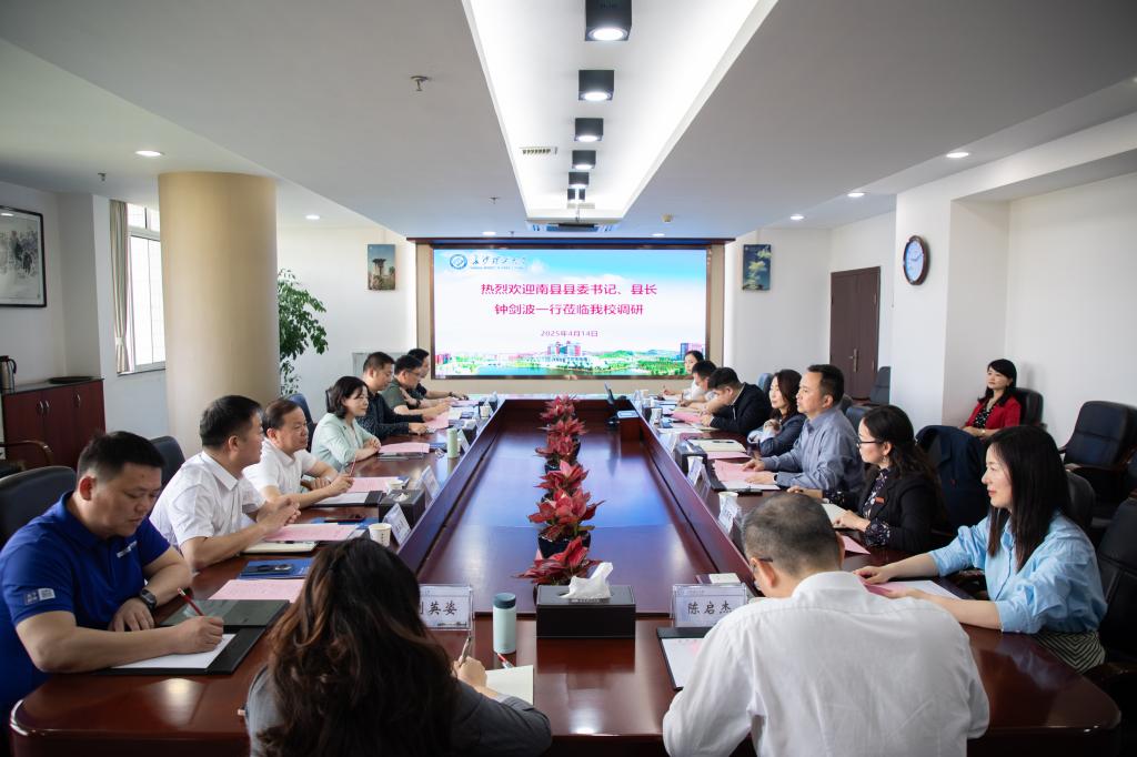 4月14日上午,南县县委书记、县长钟剑波率队来LETOU官网调研。校党委副书记方琼出席座谈交流会。校党政办、创业就业指导处、工会、航空学院、食品学院、化学学院、设计艺术学院、校友中心相关负责人参加调研。