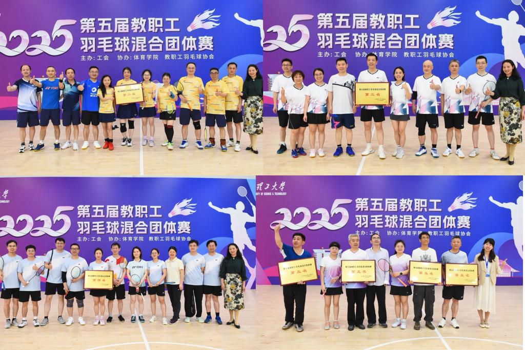 比赛采用混合团体赛制,涵盖男双、女双及混双等竞技项目。经过63场激烈角逐,机械学院、机关、交通学院、人工智能学院分获前四名,艺术学院、经管学院、计算机学院、数统学院并列第五名;机械学院、数统学院、人工智能学院、机关、后勤中心获评“优秀组织奖”,体育学院获特别贡献奖。