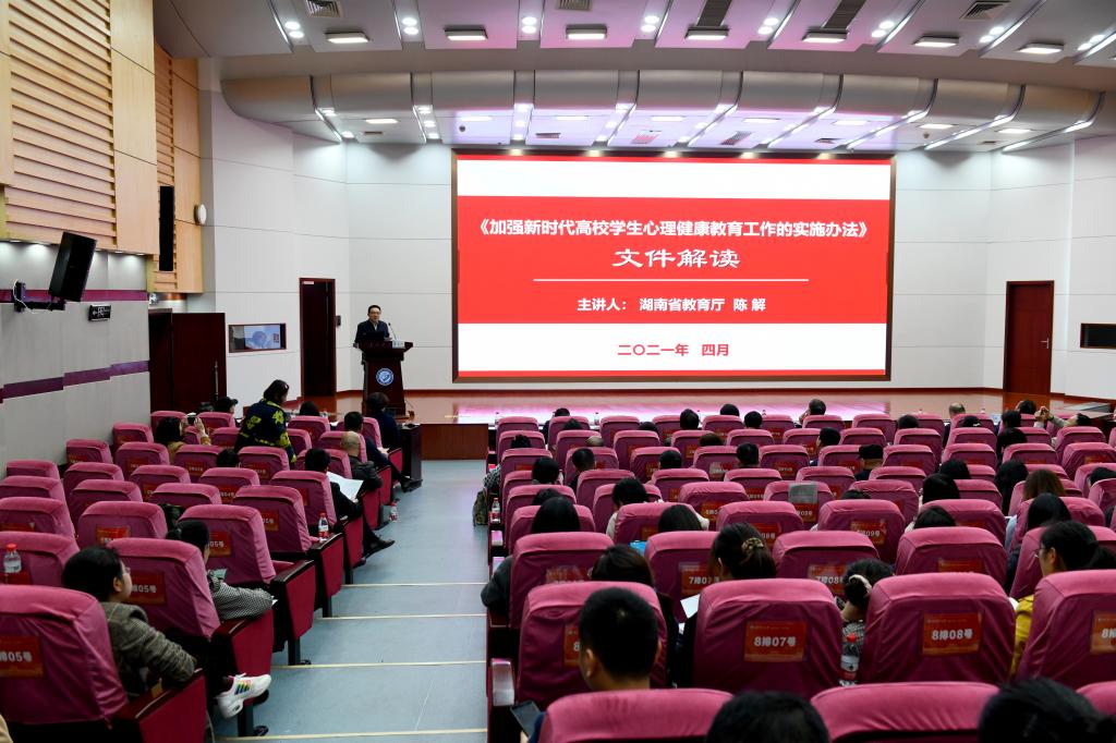 陈解对学习贯彻落实中共湖南省教育工委、湖南省教育厅近期下发的《加强新时代高校学生心理健康教育工作的实施办法》作了辅导报告,他指出,《办法》是做好新时代高校学生心理健康教育的顶层设计的系统性、规范性的文件,旨在从完善课程体系、创新活动载体、优化辅导咨询、强化预警干预、推进平台建设五个方面推动湖南省高校大学生心理健康教育的长效机制建设,接下来,要从做好部署、搭建平台、开展培训、广泛宣传这四个方面推动《办法》的贯彻落实,确保政策落地生效。