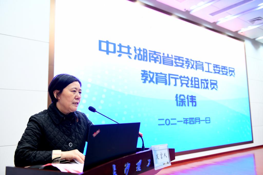 徐伟在讲话中充分肯定了湖南省高校大学生心理健康教育研究会在过去三年工作取得的显著成绩。她指出,省高校大学生心理健康教育研究会作为加强和改进大学生心理健康教育工作的学术团体,长期以来在我省高校大学生心理健康教育、心理健康教育教师和辅导员队伍建设、落实立德树人根本任务培养全面发展的大学生等方面做了大量扎实而富有成效的工作。工作亮点突出、特色鲜明,特别是在助力完善工作格局、助力队伍建设发展、助力打赢心理保卫战“三个助力”方面的工作令人感动、印象深刻、影响深远。下一步,一要立足湖南“三高四新”战略,强化顶层设计,科学规划落实专业化发展。二要突出思想引领,项目示范推动专业化发展。三要抓好督查考核,全力保障专业化发展。四要建好“五个平台”,全面助力专业化发展。五要加强“校医联动”,畅通转介通道。要不断开拓进取、扎实工作,筑高筑牢全省高校心理危机的防御墙,推动我省大学生心理健康教育工作专业化发展,为培养担当民族复兴大任的时代新人贡献湖南力量。