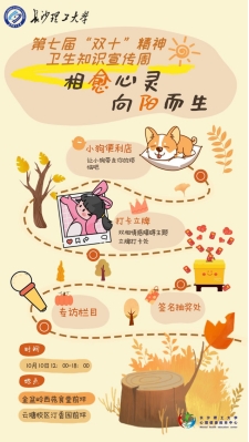 10月10日是第32个世界精神卫生日。为加强全校师生对精神卫生知识的关注和认识,积极预防和控制精神卫生问题,构建和谐平安校园,学工部心理中心在全校组织开展了第七届“双十”精神卫生知识宣传活动,帮助师生了解精神卫生的内涵,掌握精神卫生知识,提高自我精神保健意识,学习预防精神卫生问题的技能,学会及时寻求心理援助。