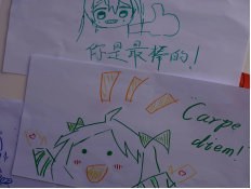 “小狗便利店”--我们还为对文字更敏感的同学提供了本活动,或书写酸楚成长的经历,或书写自己酸楚成长的经历,或讲述身边双相患者的故事,或留下对患者朋友们鼓励支持的话语。“好好吃饭、好好治疗,加油!”展板上粘贴得满满当当表现了同学们的真心交互。