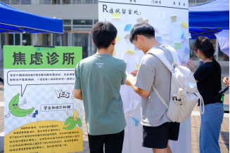 此外,现场还展示了有关焦虑症的科普展板,朋辈志愿者们通过发放科普手卡,进一步普及焦虑症的相关知识,帮助同学们深入理解这一心理健康话题。通过这些新颖有趣的活动,大家不仅学到了如何识别和应对焦虑,还加深了对心理健康的关注,真正达到了寓教于乐的效果。