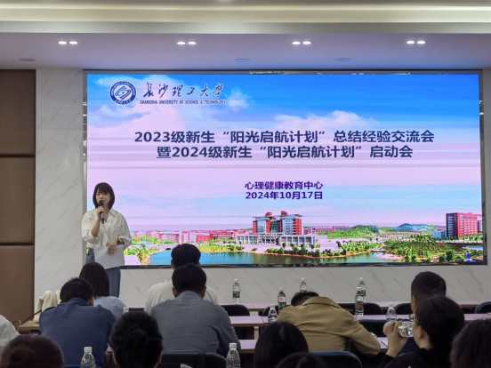 为深入实施新生“阳光启航计划”,增进各学院间的协作与交流,持续提升大学新生的心理素质与综合能力,心理中心于10月17日下午在学生活动中心207室举办了2023级新生“阳光启航计划”经验总结交流会暨2024级新生“阳光启航计划”启动会。各学院心理辅导老师及2023级、2024级年级辅导员参与此次会议。