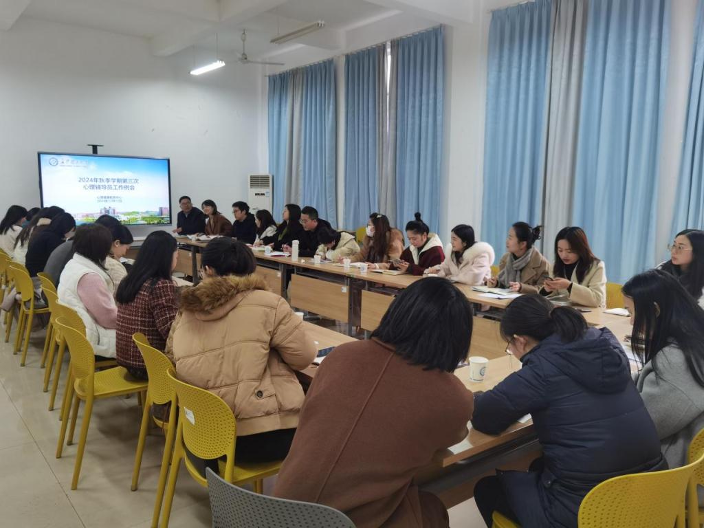 12月17日上午,2024年秋季学期第三次心理辅导员例会在中心205团体辅导室举行。会议由学工部副部长陶传谱主持,全体心理辅导员及心理中心专职老师参会。