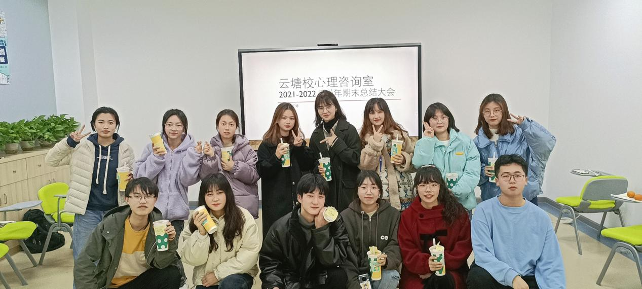 校心理咨询室(云塘校区)于2022元月12日晚19点在心理健康教育中心团体辅导室召开了学期总结大会,校心理咨询室全体助理以及心理中心李子萱老师参会。在此之前,金盆岭校区的值班助理也在1月10日图书馆B馆6楼心理团辅室召开了学期总结大会。