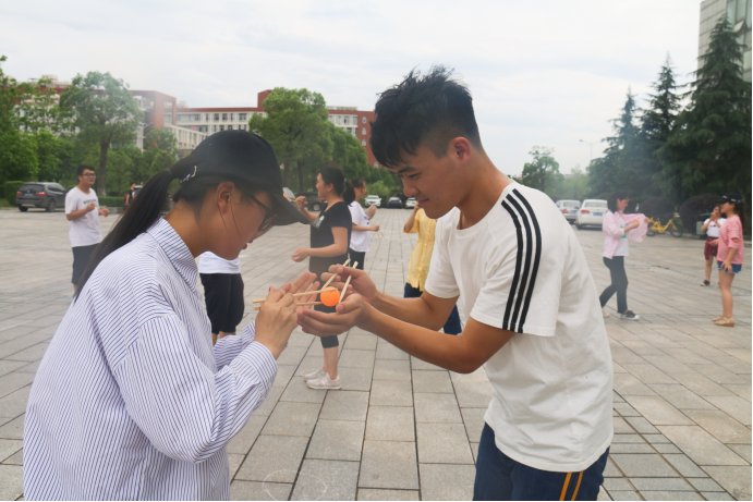 活动三则是“小心翼翼的我·筷子夹乒乓球”,小球在队员之间用筷子传递到终点。大家摒住呼吸,用筷子夹着乒乓球,小心翼翼地传递给自己的队员,每一次成功地传球,都是一次胜利的喜悦,每一次终点的到达,是一阵欢呼雀跃的欢腾。