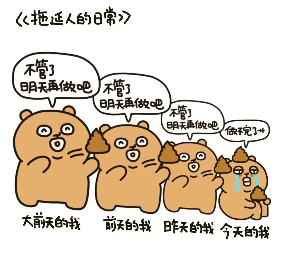 知道事情不干不行,不干就完蛋,也知道拖着不好,但就是迟迟不动手,老是拖!拖!拖!