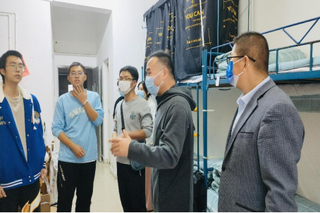 走访过程中,老师与同学们亲切交流,了解学生急难愁盼问题,叮嘱同学要做好个人防护,佩戴好口罩,养成良好的生活作息习惯;严格遵守疫情防控规定,积极配合做好核酸检测、易班健康打卡等工作;合理安排好学习,保持乐观心态。每到一个寝室,江河书记便与同学们强调,身体才是抗疫的本钱,鼓励同学们在做好疫情防控的前提下进行体育锻炼,增强身体素质,以阳光积极的心态、健康的体魄抗击疫情。