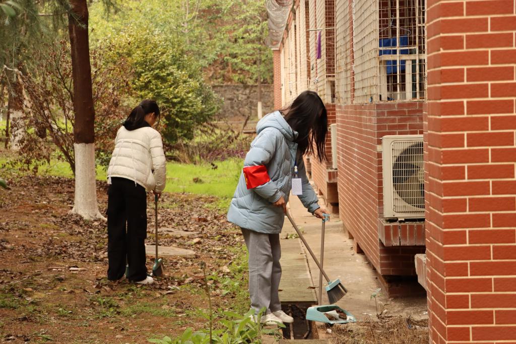 参与的志愿者们不怕脏、不怕累,许多同学也自发加入了进来,校园内到处活跃着忙碌的身影。大家热情高涨,顾不上喝水休息,有的人手被杂草割破了,有的衣服弄脏了也毫无怨言。