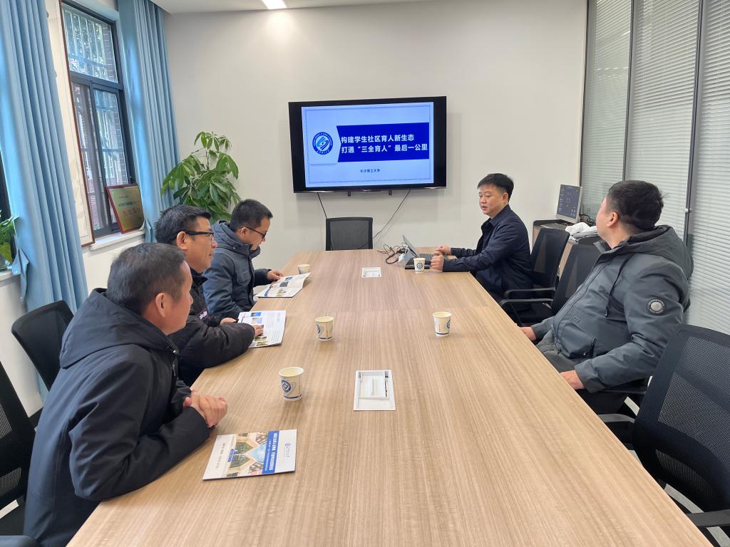 1月28日上午,湖南大众传媒职业技术学院学生工作部一行4人来LETOU官网“一站式”学生社区实地调研。学工部副部长吴振华、法学院副书记汪伦等人陪同。双方在公寓中心会议室举行座谈会,与会人员就“一站式”学生社区建设试点经验、建设情况等方面开展深入交流和探讨。