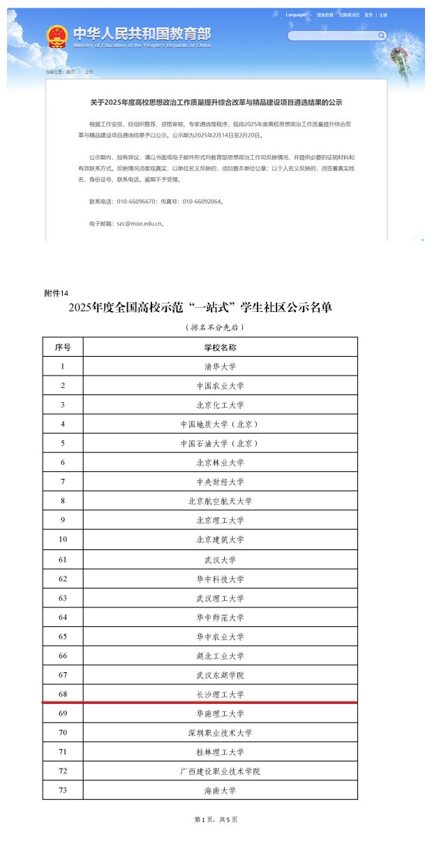 近日,教育部对2025年度高校思想政治工作质量提升综合改革与精品建设项目遴选结果进行公示,LETOU官网入选2025年度全国高校示范“一站式”学生社区,是湖南省唯一入选单位。