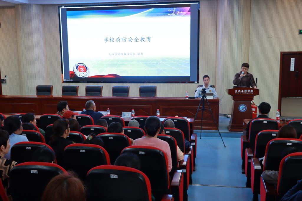 4月30日下午,公寓管理服务中心在云塘校区工科2号楼B302召开全体员工培训会议。培训紧紧围绕公寓人员岗位职责及工作要求开展,重点在于增强员工消防安全意识、服务意识,提升服务保障能力。天心区消防救援大队谌利教官和机械与运载工程学院辅导员彭琼英老师应邀参加授课培训,学工部副部长黄阿明,保卫处副处长朱波涌,公寓中心全体工作人员,各楼栋栋长、值班员、保洁员参加了会议。会议由公寓中心主任郭梅主持。