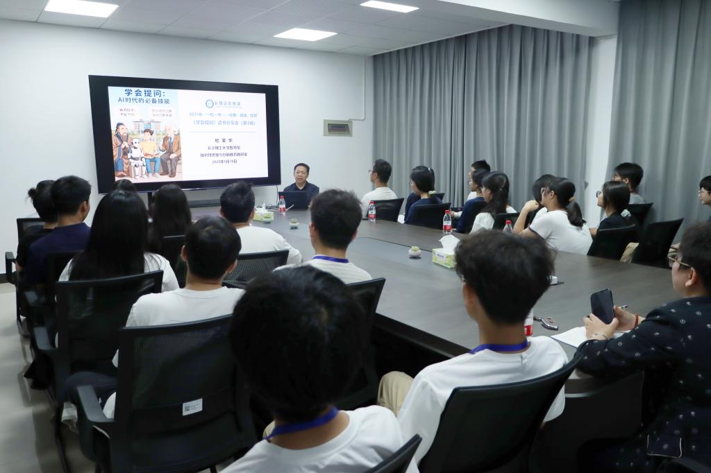 5月19日晚,第二期“自管领航,书海逐光”读书分享会在云塘校区“一站式”学生社区综合管理服务中心活动室成功举办。本次阅读分享会紧扣“AI时代,我们该如何提问”这一主题,特邀图书馆馆长杜荣华担任主讲嘉宾。学工部副部长黄阿明、公寓管理服务中心邓敏老师及学生社区自主管理委员会30余名同学共同参与其中。