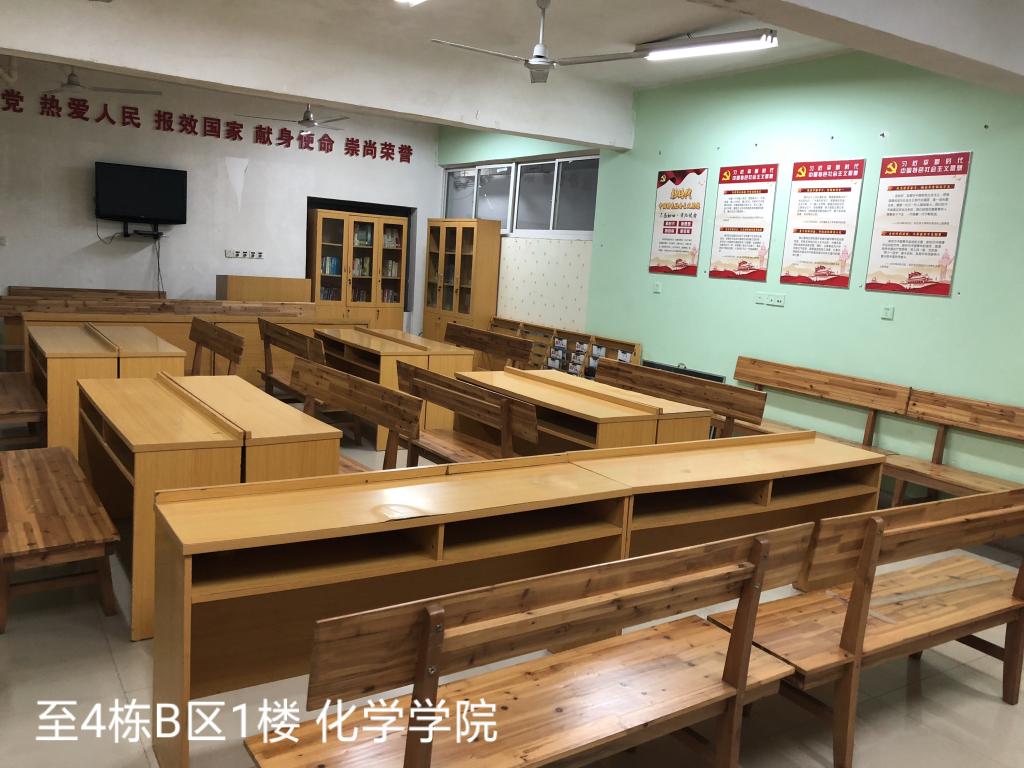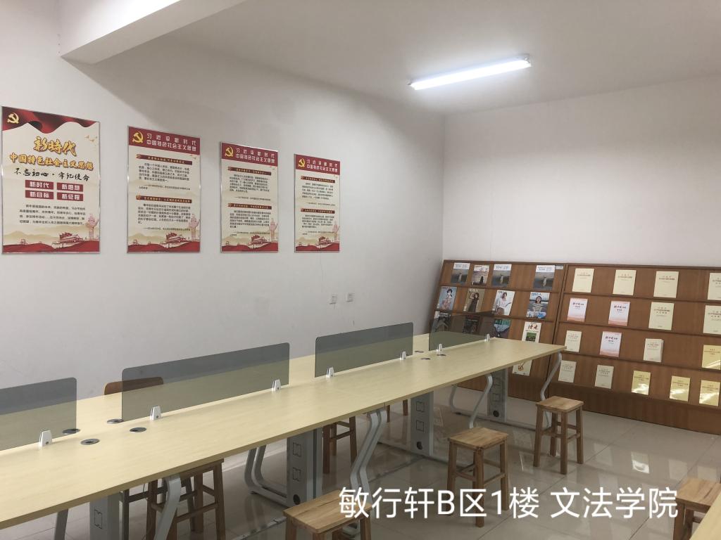 为落实学校“不忘初心、牢记使命”主题教育要求,深入学习贯彻习近平新时代中国特色社会主义思想,将学生公寓打造为学生思想政治教育的坚实阵地,2019年10月,学生公寓中心联合各学院在学生公寓内建成10间习近平新时代中国特色社会主义思想学习研讨室(其中云塘校区7间、金盆岭校区3间)。目前,学习研讨室已于10月底正式挂牌并投入使用,为同学们提供了一个温馨舒适的学习环境。