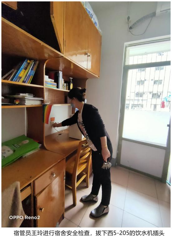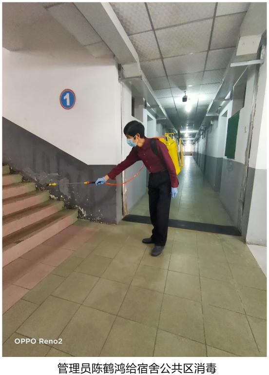 为做好开学前的准备工作,宿管员除每日完成楼栋巡查和宿舍公共区消毒外,还对全体学生宿舍进行消毒、通风,对公寓水、电、消防器材进行全面检查,对洗衣房、饮水机、空调等进行消毒督查等。此外,在公寓中心的安排下,宿管员还参加了新冠肺炎防控知识、应急预案的学习和开学演练等,通过学习和演练,大大提高了管理员应对疫情的能力,为复学后公寓工作的开展做好了充足准备。