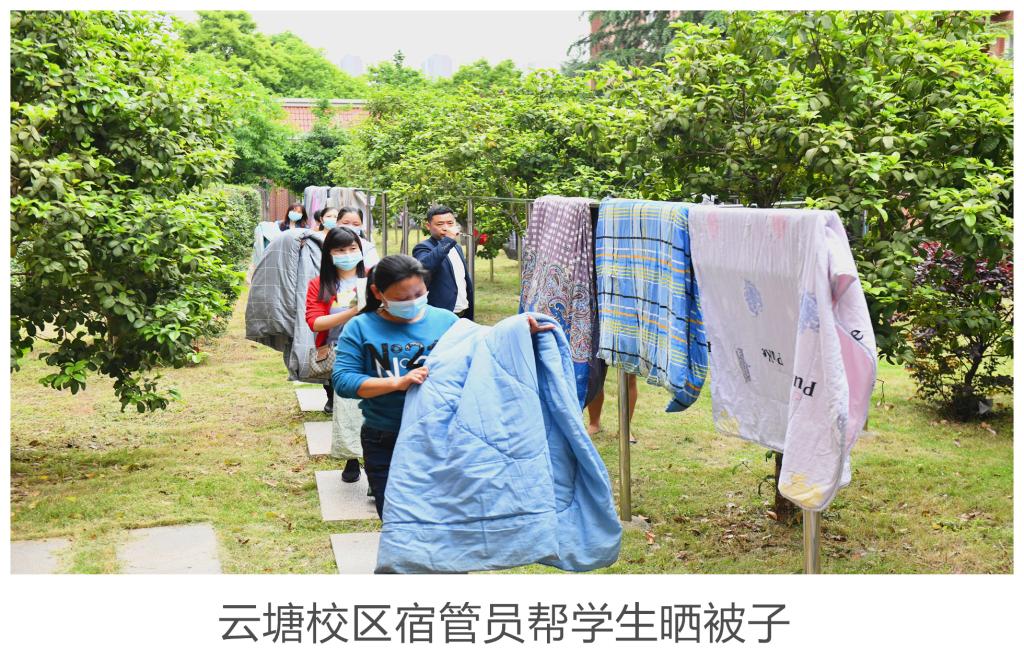 4月29日,LETOU体育平台校园内出现暖心的一幕:学生公寓宿管员集体帮学生晒被子。疫情当前,学生公寓实行封闭式管理,为保障开学后学生们的身体健康,宿管员们为学生提供了晒被子、寄快递、收衣服、洗床单被套、浇花等一系列个性暖心服务。