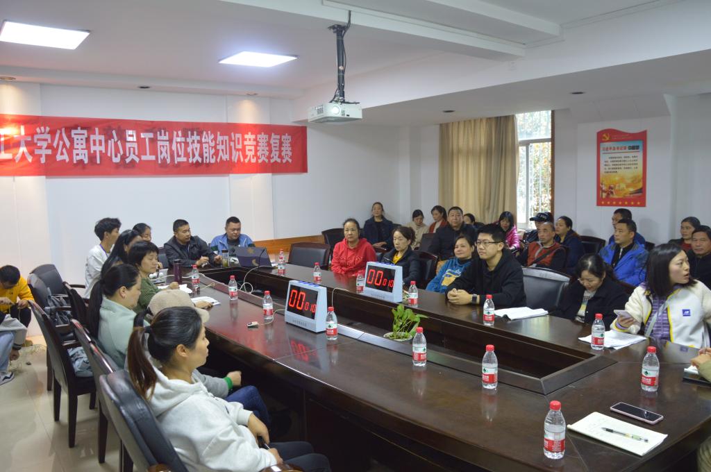 为了进一步加强全体工作人员的综合素养与业务能力,以及面对突发事件的预防与应急准备、监测与预警、应急处置与救援等的应对能力,经过精心组织,认真准备,前期学习培训、现场考试,11月19日上午10点半,公寓中心在云塘校区弘毅轩一栋会议室举行了员工业务技能知识竞赛复赛。从第一轮员工业务技能知识笔试竞赛中抽选12名优秀选手组成四队(每队3人)进入本轮复赛。