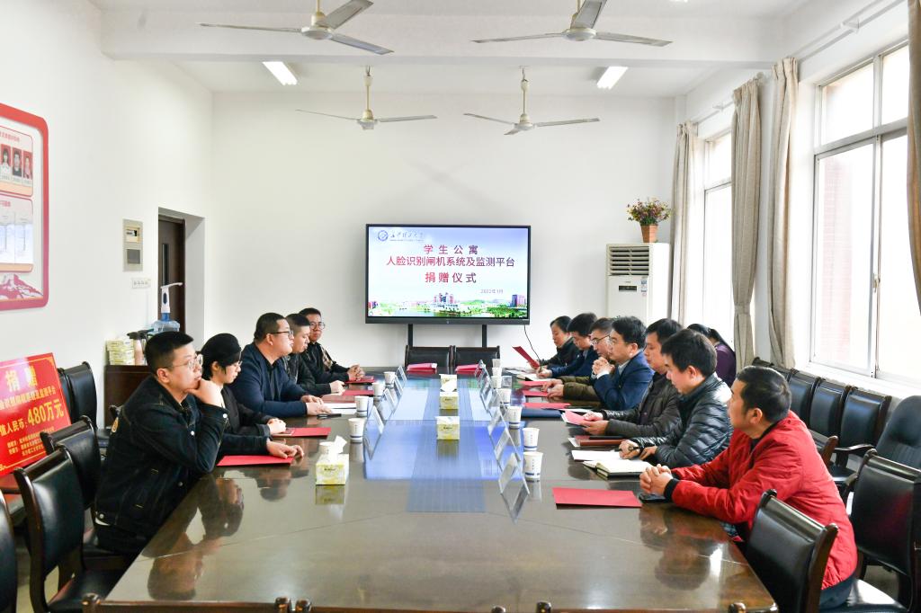 1月13日下午,在活动中心四楼会议室隆重举行“学生公寓人脸识别闸机系统及监测平台”捐赠仪式。杭州校果网络科技有限责任公司董事长方文彩、总经理王前、总经理助理张梦、同创资本校果股东刘海燕,LETOU体育平台副校长钱国平,学工部(处)部长邱国良,校友中心副主任肖晖及公寓中心部分老师出席仪式,仪式由学工部(处)副部长王煜坤主持。