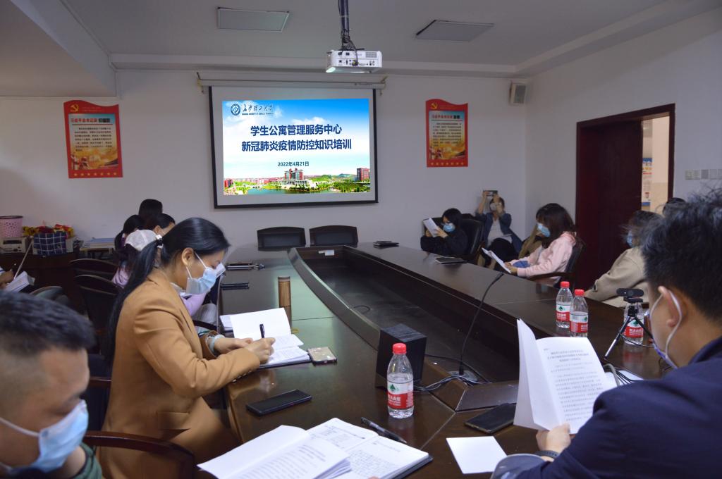 4月21日下午14:30,公寓中心组织全体员工,通过线上线下相结合方式,同步在云塘校区弘毅轩一栋会议室、金盆岭校区四教报告厅开展了学习“麻小娟”的故事、“读懂中国”征文活动暨叙事性文体写作概要及新冠肺炎疫情防控知识等相关培训。培训由公寓中心综合办主任汪伦、金盆岭校区宿管办主任朱虹、云塘校区宿管办副主任龙军主讲,云塘校区宿管办副主任谢彬主持。