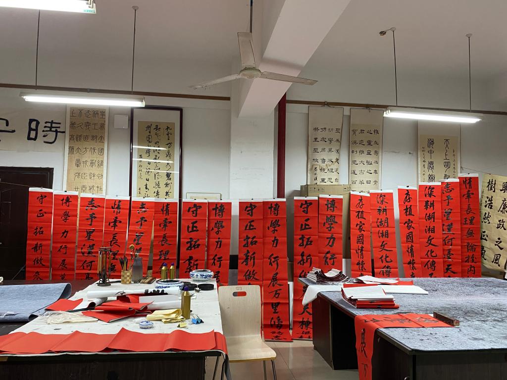 为了给毕业生们留下独特的毕业季回忆,学工部(处)公寓中心发挥学生社团进驻“一站式”学生社区的优势,组织墨浪书画协会的同学,师生一同创意对联内容,利用课余时间精心书写60多副祝福对联。