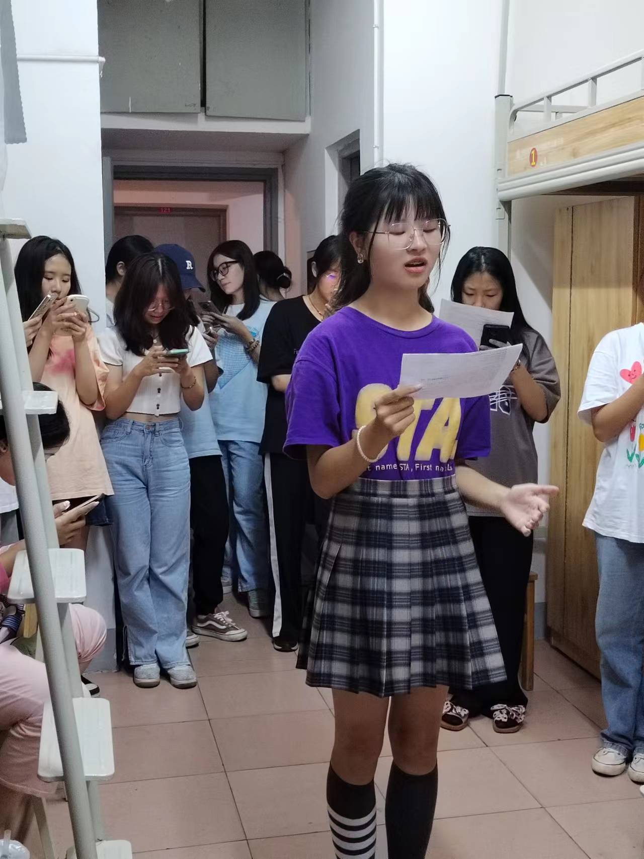 为了陶冶同学们的艺术情操,提升同学们的诗歌朗诵水平,展示青春活力,营造朝气蓬勃、积极向上的寝室校园文化。更为了在新学期的开始,能让正处“青春之进程”的每一位青年学子将“青春在奋斗中熠熠生辉”的信念根植与心田,法学院于9月19日晚在22级新生寝室举办了“筑梦青春,奋斗无悔”的诗歌朗诵活动。