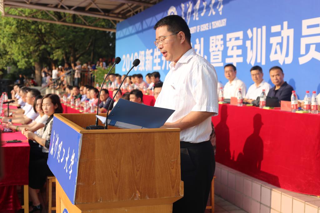 上午7:30,大会在庄严的国歌声中拉开序幕。校长曹一家代表全校师生对2019级新生表示衷心的祝贺和热烈的欢迎,并以《立志、求知、奋斗,做新时代的有为青年》为题致辞。