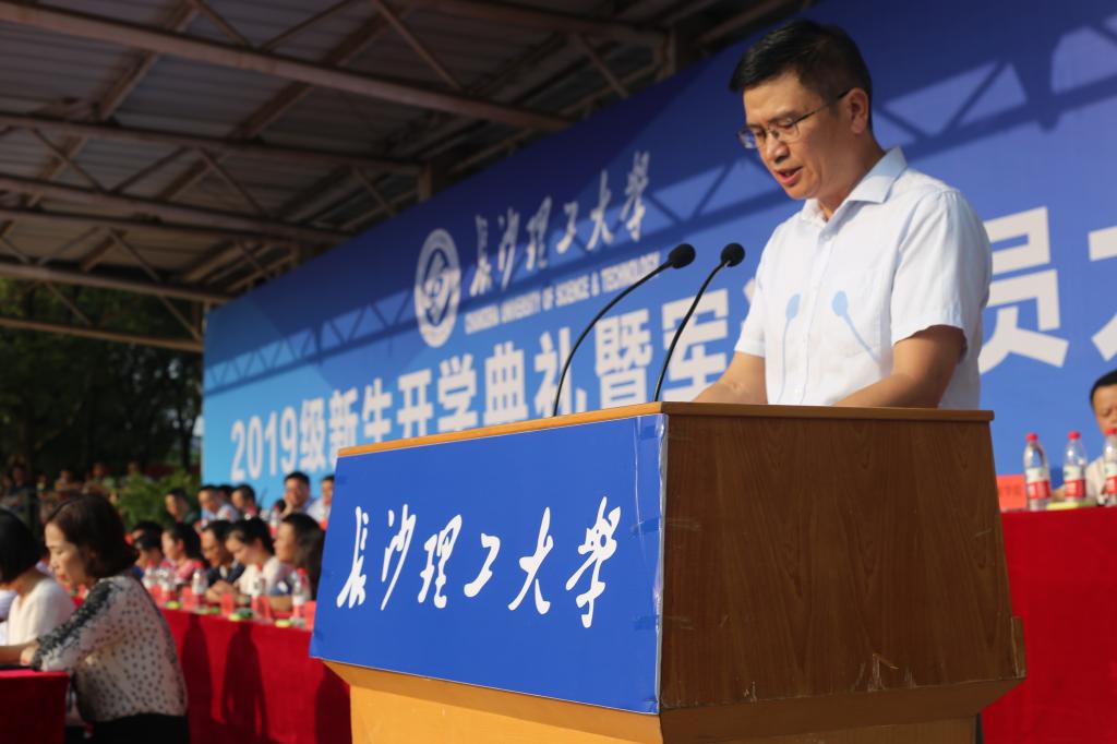 9月9日上午,LETOU体育平台2019级本科新生开学典礼暨军训动员大会在金盆岭校区田径场隆重举行。校长曹一家,校党委副书记邹宏如,副校长黄立宏、谈传生,纪委书记胡永乐,副校长蒋昌波、刘扬,党委委员付嫦娥、齐路良、方琼出席,职能部门负责人、学院党政主要负责人、2019级新生辅导员及全体2019级本科生参加了大会。开学典礼暨军训动员大会由副校长谈传生主持。