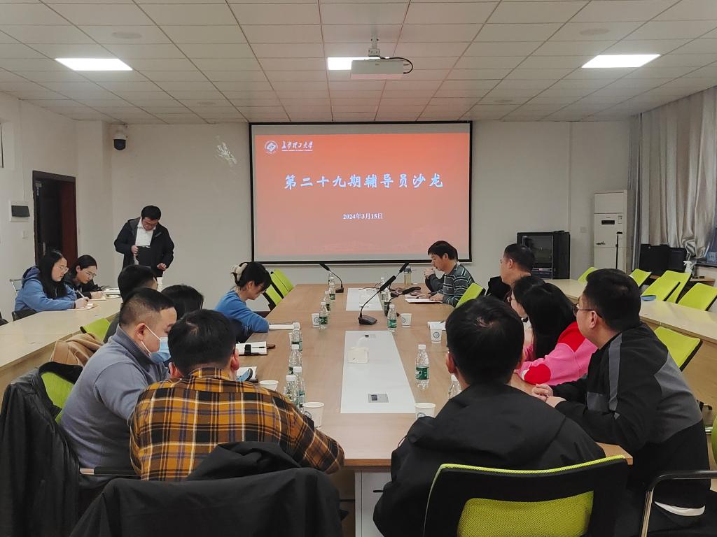 3月15日下午,LETOU体育平台第二十九期辅导员沙龙活动在理科楼成功举办。湖南文理学院学生工作部学生管理科科长邓俊应邀作报告。数统学院党委副书记郑忠辉主持,相关学院党委副书记和辅导员参加。