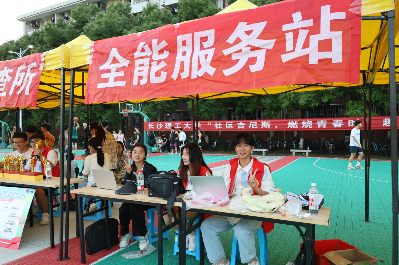 学社联同学的开场舞点燃全场,篮球赛冠军队土木学院的精彩三分球把运动会推向高潮。三分球挑战区秒变“欢乐之区”——每当有人投中,围观群众就会集体欢呼和加油助威;筷夹乒乓球区上演“手抖大师”合集,乒乓球逃跑的速度比早八人冲向教室还快;投壶比赛榜首投中33支,简直就是长理“神投手”;“你画我猜”的默契配合、“疯狂快递员”的障碍冲刺、“四人五足”的团队协作,无不展现着室友们的默契、智慧与活力,让整个至诚轩社区篮球场成为欢乐的海洋,现场笑声不断。