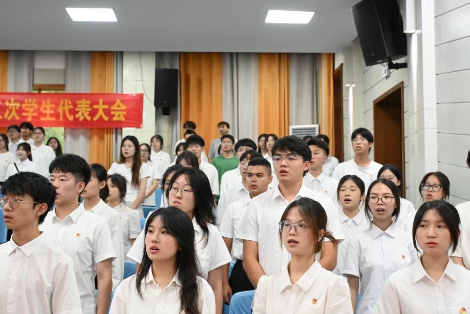 正式会议在庄严国歌声中开幕。贺鹏为大会致开幕辞,他肯定学院学生会在思想引领、组织建设、社会实践等方面取得的显著成绩,并勉励新一届学生会传承优良传统,以饱满热情服务同学。