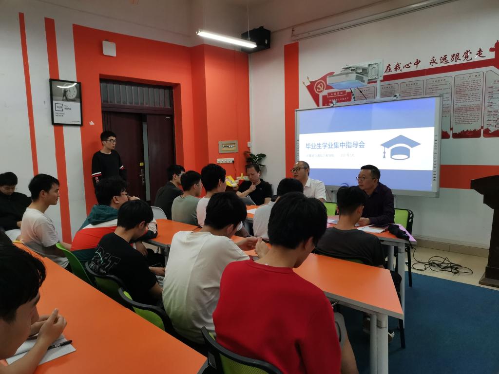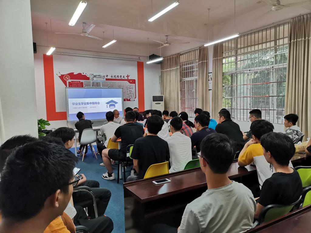 5月28日下午,计通学院在理科楼B103召开了毕业生学业集中指导会,学院党委书记刘宏伟、副院长王威、副书记涂道勇出席,17级辅导员潘枝花及就业辅导员聂静参会,40余名毕业生参加。