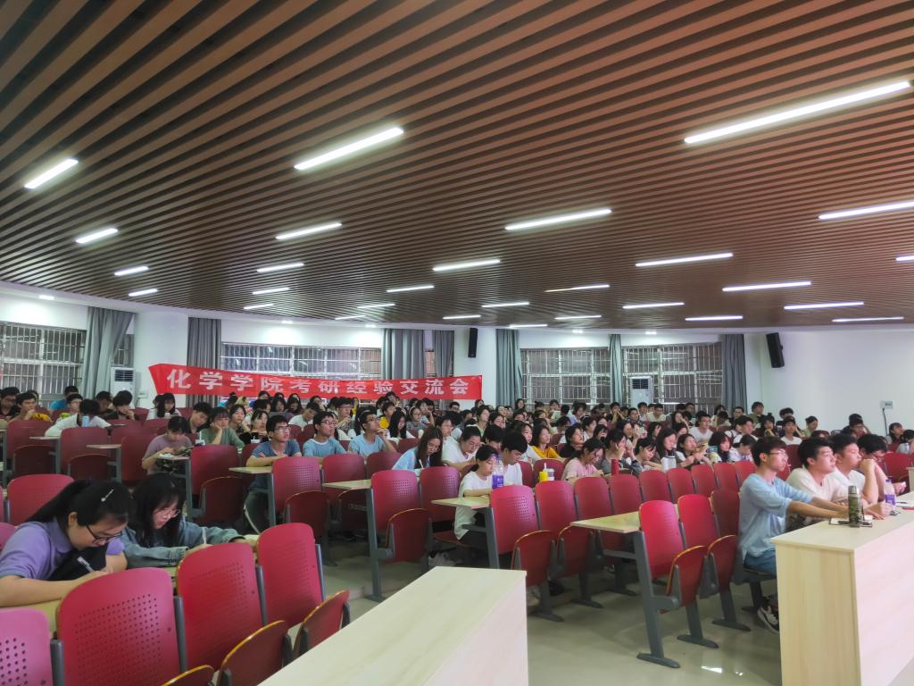 5月13日晚,化学学院举办第十五期职业与人生大讲堂,此次活动聚焦考研经验交流,邀请了多位考研成绩突出的21届毕业生及学院副教授邹振,一同分享考研经验,畅谈考研相关问题,学院低年级近300名学生主动报名参加,学院就业辅导员兰贵辉参加。