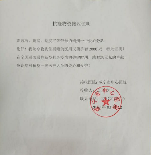 材料学院材料类1804班学生陈云洁,疫情暴发后借助QQ空间和微信朋友圈发起主题为“以我微光,聚以成明”的捐赠倡议,60小时共收到了善款4482.15元,购置2500双医用灭菌一次性手套发往湖北咸宁中心医院。