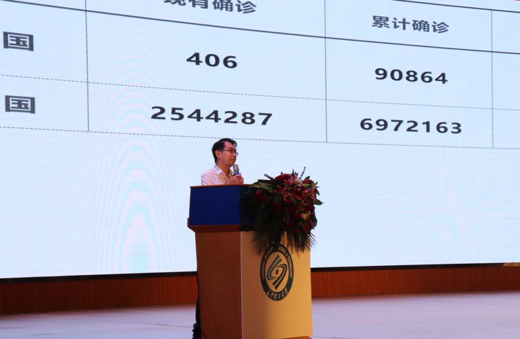 长沙市青年讲师团讲师俞嘉诚以《我爱你,中国——坚定新时代青年的制度自信》为题和青年学生进行了分析。他强调,在这次疫情中,中国青年受无数逆行榜样言传身教的影响,正坚定地成长为正义、勇敢与善良的新时代青年,不负青春、不负韶华、不负时代。