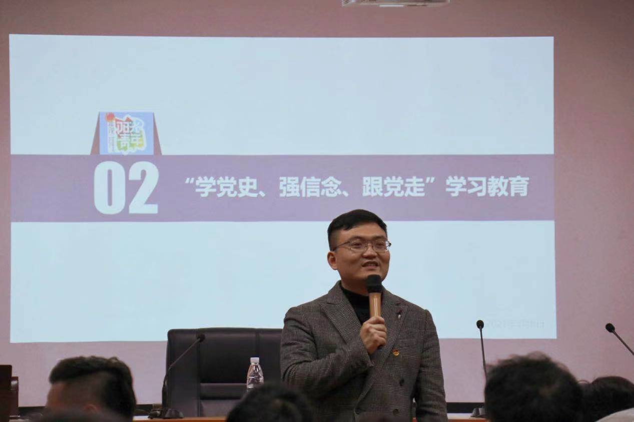 会议第二部分,开展“学党史、强信念、跟党走”学习教育活动,王学成强调,就个人而言,大学是世界观、人生观、价值观形成的重要时期,在这一时期,身为青年学生,更应该用党的理论知识武装自己、靠坚定的信念提升自己;就整个社会背景而言,正如习近平总书记在纪念五四运动100周年大会上的讲话中提到的——新时代中国青年处在中华民族发展的最好时期,既面临着难得的建功立业的人生际遇,也面临着“天将降大任于斯人”的时代使命。青年学生应该肩负起实现中华民族伟大复兴的历史重任,将自己的个人梦、个人理想融入国家和民族复兴的伟大事业中。