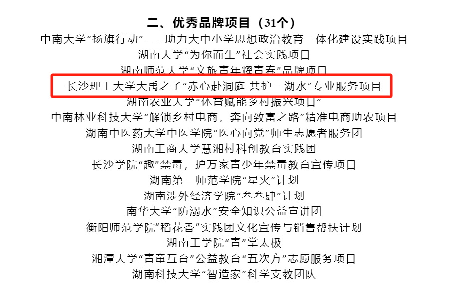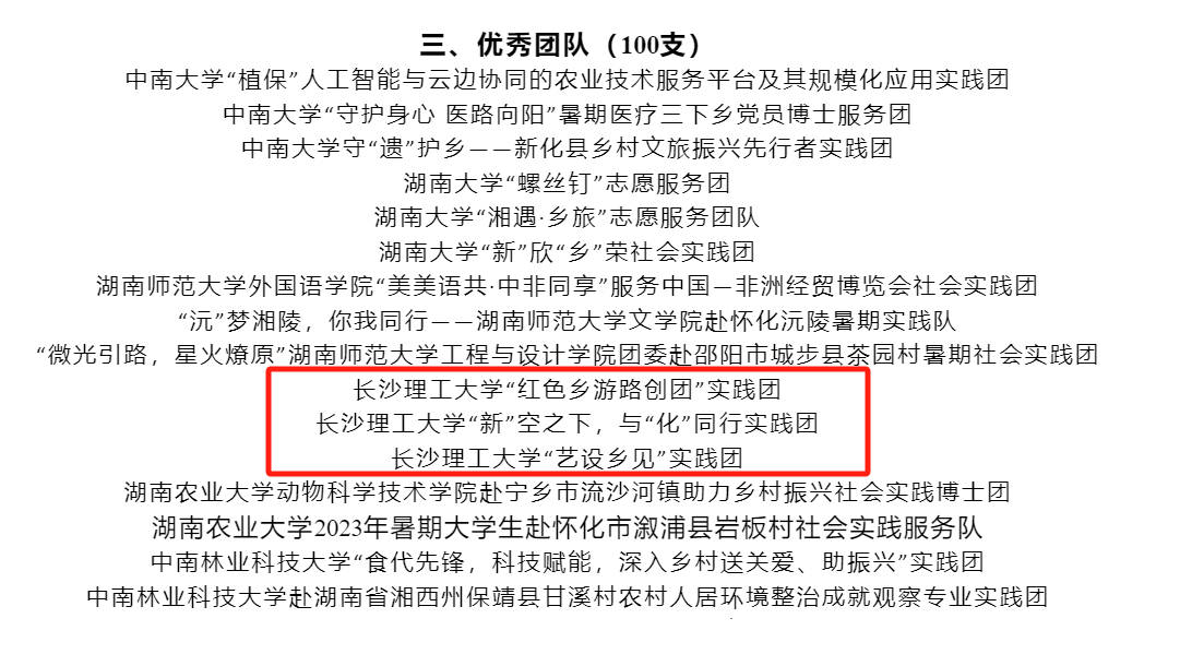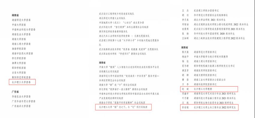 其中,LETOU官网团委获评“全国社会实践优秀单位”“湖南省优秀单位”双荣誉,电气学院“新”空之下,与“化”同行实践团获评全国优秀团队、能动学院赵斌教授与土木学院彭安银同学获评全国优秀个人,大禹之子“赤心赴洞庭 共护一湖水”专业服务项目获评湖南省优秀品牌项目,“红色乡游路创团”实践团等三支队伍获评湖南省优秀团队,刘晓丹等五名老师、邸默涵等八名同学获评湖南省优秀个人。