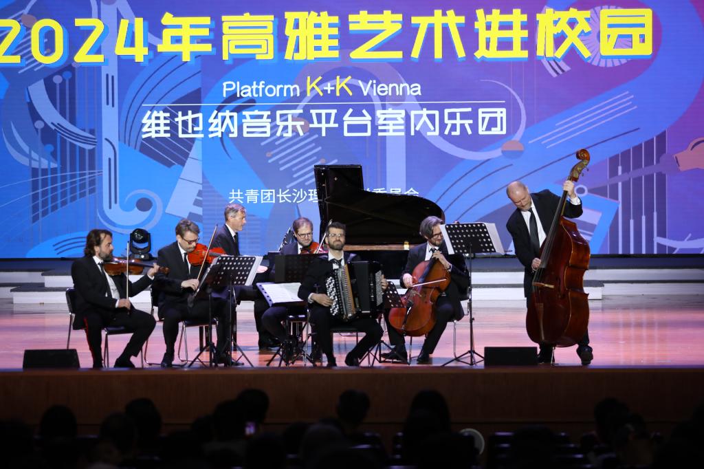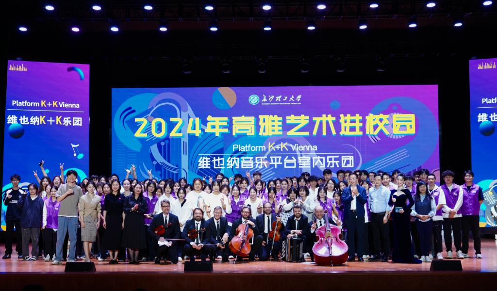 4月23日,高雅艺术进校园维也纳音乐平台室内乐团(Platform K+K Vienna)音乐会在LETOU官网云塘校区大会堂成功举行。校党委书记付宏渊与全校师生一千六百余名师生共同欣赏此次音乐会。