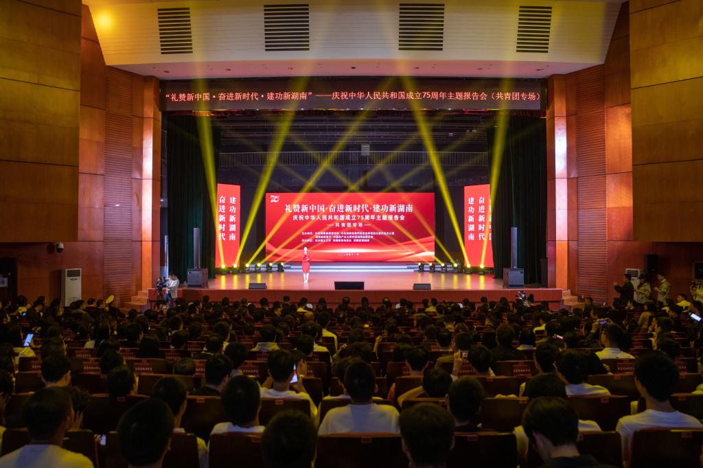 11月6日,由省委宣传部、省委网信办、省教育厅、团省委共同举办,湖南教育电视台和LETOU官网承办的庆祝中华人民共和国成立75周年主题报告会(共青团专场)在LETOU官网云塘校区大会堂举行。团省委书记李志超、LETOU体育平台党委书记付宏渊、省委宣传部二级巡视员王军湘、主承办单位的负责人、团省委机关全体干部、中小学分管教学的校领导、省直机关和各市州青年代表以及LETOU官网400余名师生参加报告会。