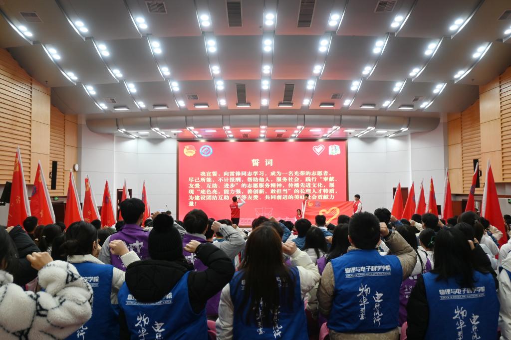 启动仪式上,学校学工部负责人宣读了《关于开展LETOU体育平台2025年学雷锋志愿服务活动的通知》,鼓励青年学生学习雷锋精神,弘扬榜样力量,投身志愿活动,传递人间温情。交通学院韦辰睿作为志愿者代表发言,他结合个人参加志愿服务的经历,围绕奉献、责任、使命三大主题,分享了自己的心得和收获;能动学院胡湘茹宣读《弘扬雷锋精神,争做时代先锋》倡议书,号召全体志愿者紧跟时代步伐,做雷锋精神的传承者、弘扬者和践行者,让“志愿红、创新蓝、生态绿”成为长理青年志愿服务的最美底色。国际工学院胡耀予带领全体志愿者庄严宣誓。