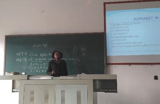 课程开始,白雅老师通过与同学们的互动,对法语进行简单的介绍,激发了同学们对法语学习的兴趣。九层之台,始于垒土,为打好大家的基础,白雅老师首先对同学们进行26个字母以及音标的读音教学,一遍又一遍地纠正大家的读音。读音练习结束后,白雅老师开始了日常问候以及自我介绍的对话教学。尽管是首次接触法语,且相对于英语,法语的发音也更加困难,但同学们对于新语种的学习依旧兴趣十足,课堂现场气氛十分活跃,台上台下互动十足。经过一个上午的培训之后,同学们初步具备了用语法问候、自我介绍的能力。