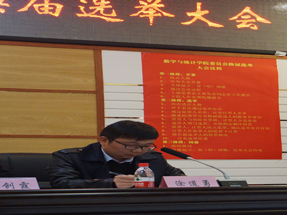 2017年3月14日下午14:30,中国共产党LETOU体育平台数学与统计学院委员会换届选举大会于理科楼B311隆重举行。学校党委委员、副校长黄立宏和党委组织部副部长方文彬受邀在特邀嘉宾席就座。