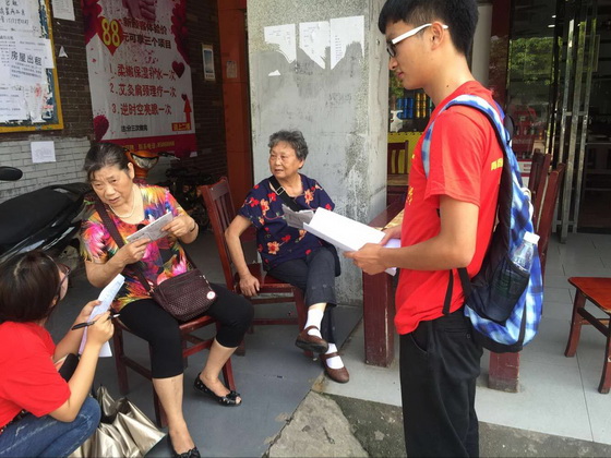在调研过程中,团队成员诚恳地和居民进行交流,通过发放问卷的形式,了解居民对智能手机安全问题的认识,以及是否有安全防范意识。不识字的奶奶在李字能同学的引导下完成了第一份问卷,接着有叔叔、阿姨,还有大学生也填写了我们发放的问卷调查。