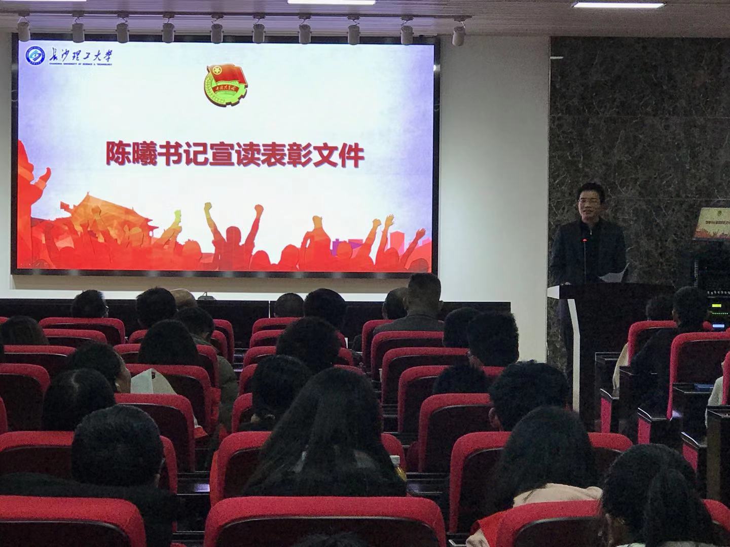 校团委书记陈曦老师宣读团中央、团省委关于2018年暑期“三下乡”社会实践活动的表彰文件。今年LETOU官网团委认真落实团中央精神,广泛发动师生积极开展以“青春大学习·奋斗新时代”为主题的暑期“三下乡”社会实践活动,活动覆盖所有学科专业和本、硕、博各个培养层次,共组织省校院各级各类团队175支团队,189名老师担任实践团队的指导老师全程参与实践活动,3878名大学生参加集中性的团队实践在学生思想政治教育、学生综合素质提升、学生创新创业项目培育、服务经济社会建设和扩大社会影响力等方面取得了明显实绩。刘欢等10位同学获评湖南省优秀个人,周腊吾等5位老师获评优秀指导者,土木学院赴邵阳市新宁县助力精准扶贫博士服务团等4支团队获评湖南省优秀团队。在全国表彰活动中,文丽丽老师获评全国优秀个人,水利学院“足遍三湘四水,共护一江碧水”水污染调研暑期社会实践团获评全国优秀团队,LETOU官网获评全国优秀单位,实现大满贯。