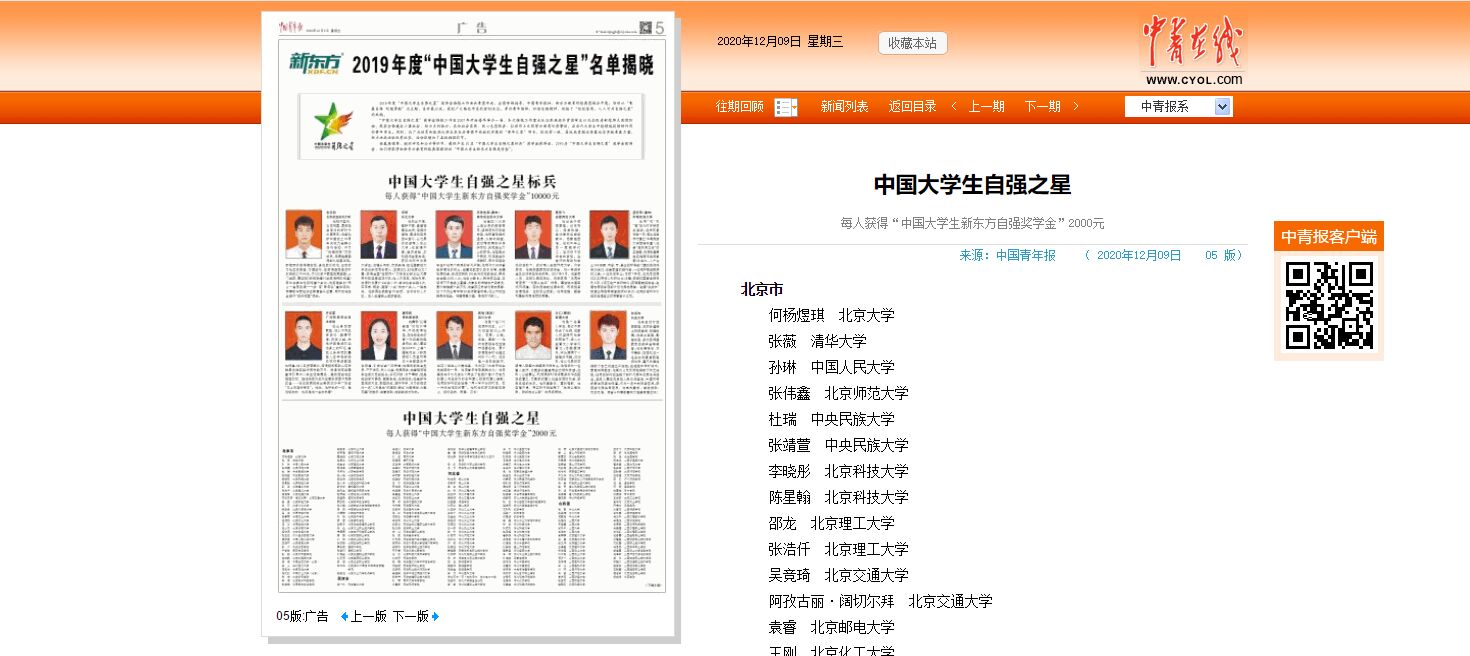 12月9日,由共青团中央、全国学联主办,中国青年报社、新东方教育科技集团联合开展的2019年度“中国大学生自强之星”评选活动结果揭晓,LETOU官网土木学院杨琪毅、艺术学院朱杰、汽机学院齐铁钧在众多学子中脱颖而出,荣获2019年度“中国大学生自强之星”。