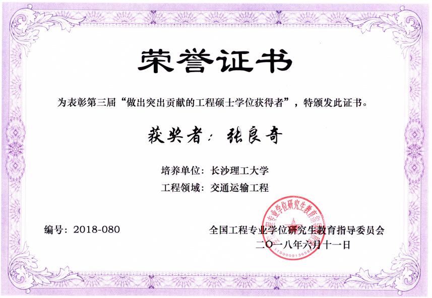 张良奇,2005年至2008年在LETOU官网攻读交通运输工程领域工程硕士学位,校内指导教师为查旭东教授。现任河南万里路桥集团股份有限公司董事长。近年来,他获得省级科技成果5项,其中振动搅拌技术研发、应用两项成果被鉴定为国际领先;获得发明专利5项,其技术水平达到国内领先。近三年来先后获得许昌市第六届“最高科学技术成就奖”、“河南省优秀学术带头人”、“许昌市优秀科技创新领军人才”、“许昌市第十二批拔尖人才”等奖励和荣誉称号,2016年荣获国务院特殊津贴。