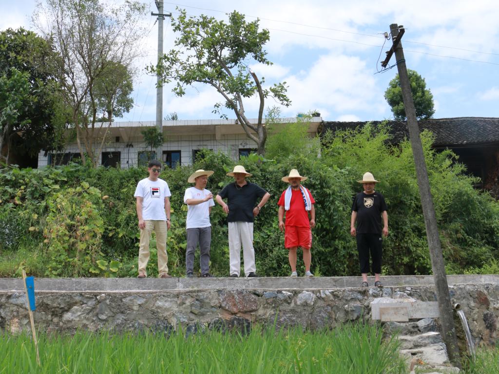 最后,谈传生一行走访了贫困户,参观了生态循环种养水稻基地。在贫困户唐建香家中,谈传生与她拉起了家常,了解了她的生活近况,鼓励她积极参加村上的文化活动;在参观水稻基地的时候,谈传生详细了解了鸭稻共生酵素种养模式的投入成本和预估经济效益等,肯定了工作队的创新精神,并表示将会大力支持产品的销售工作。